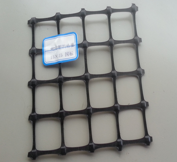 雙向拉伸塑料土工格柵是以聚丙烯(PP)或聚乙烯(PE)為原料,經(jīng)塑化擠出板材、沖孔、加熱、縱向拉伸、橫向拉伸而成。該材料在縱向和橫向上都具有很大的拉伸強度,這種結構在土壤中能夠提供一個更為有效的力的承擔和擴散的理想連鎖系統(tǒng),適應于大面積承載的地基補強。