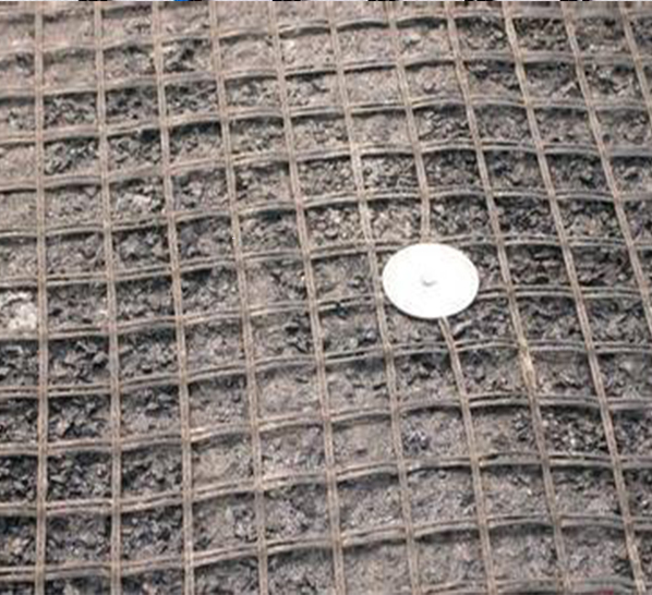 現(xiàn)常用的玻纖土工格柵有帶自粘膠和不帶自粘膠兩種,帶自粘膠的可直接在已平整的基層鋪設(shè),不帶自粘膠的,通常采用釘子固定法。