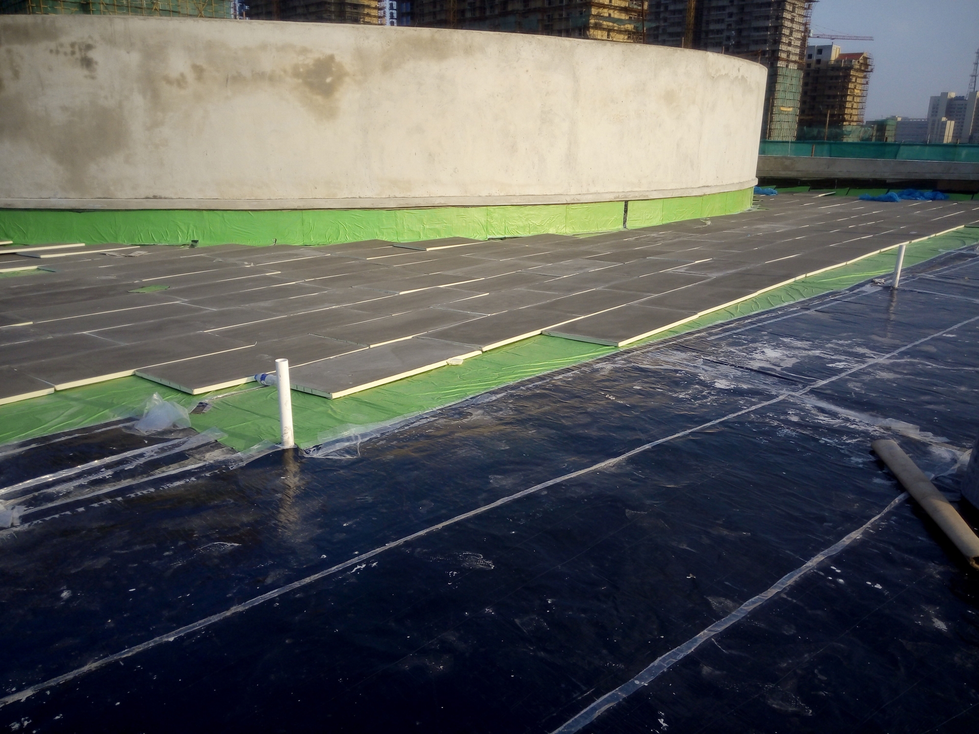 平面和立面部位的防水層施工完畢并經(jīng)檢查驗收合格后,宜在防水層上虛鋪一層瀝青防水卷材做保護隔離層,鋪設(shè)時宜用少許膠粘劑固定,以防在澆筑細石混凝土剛性保護層時發(fā)生位移。保護隔離層鋪設(shè)完畢,即可澆筑40~50mm厚的細石混凝土保護層。在澆筑細石混凝土的過程中,切勿損失保護隔離層和卷材防水層。如有損失必須及時對卷材防水層進行修補,修補后再繼續(xù)澆筑細石混凝土保護層,以免留下滲漏隱患。